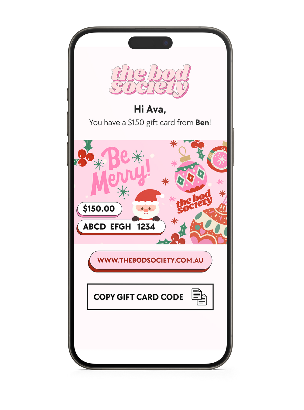 Give the gift of glowing skin this Christmas with a Bod Society gift card! Once you've checked out, you'll have the option to either download the gift card or email it directly to the person you are buying it for.